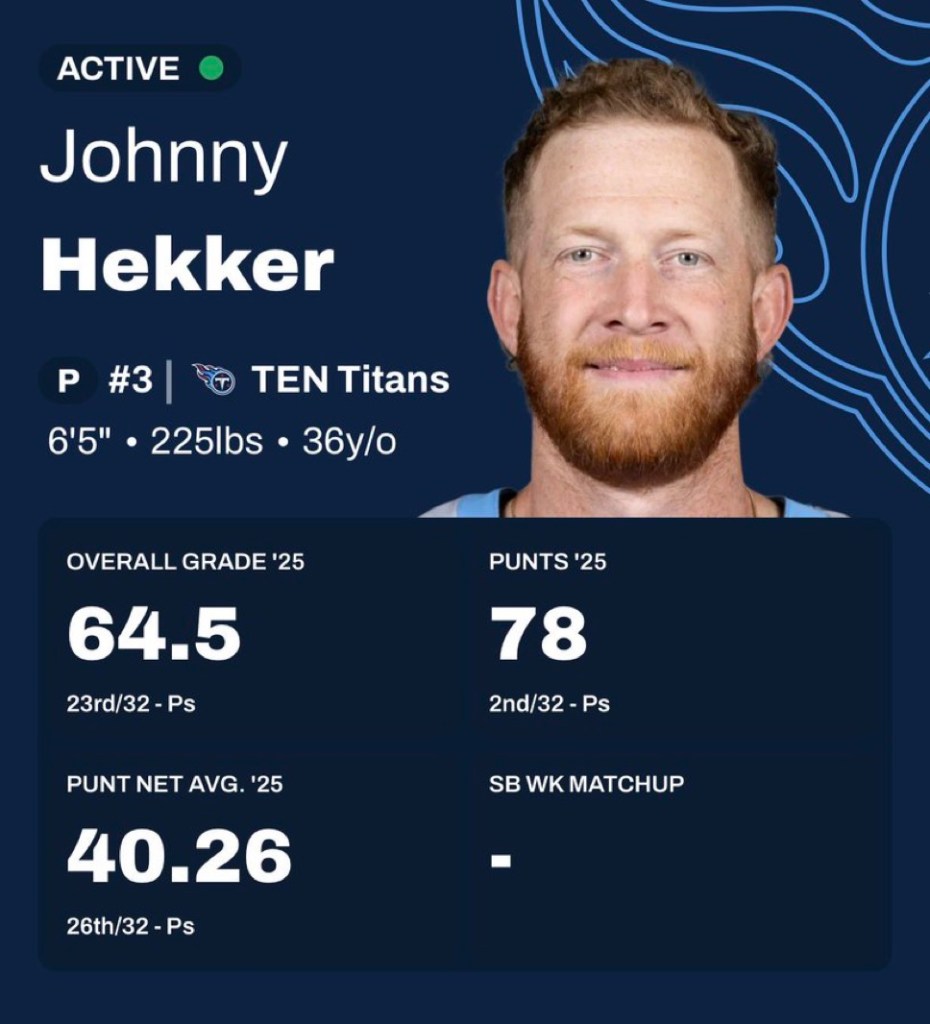 He does have big shoes to fill after Ryan Wright left and signed a 4-year contract with the New Orleans Saints. Wright had a career year in 2025, where he averaged a booming 49 yards per kick, and had a 25% success rate of pinning of opponent inside their own 20.